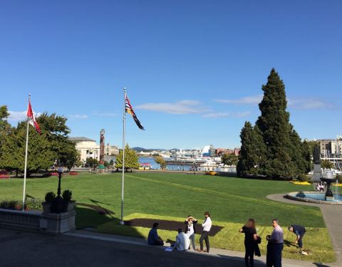 维多利亚省议会大楼1897年落成,是典型的欧式建筑,正对繁忙美丽的维多利亚内港, 门前有漂亮的大草坪