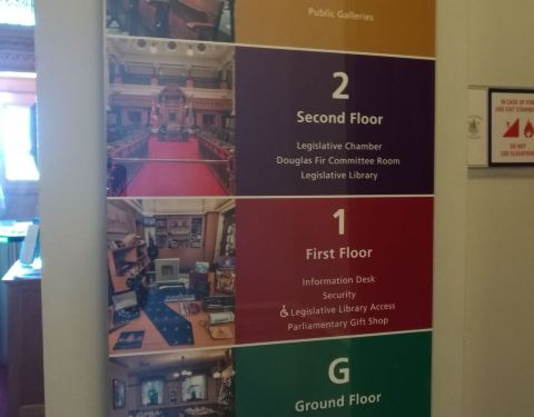 议会大厦1893年动工,1897年竣工,建筑风格是自由古典式,尽可能的使用了BC省出产的建筑材料。1972年大厦又修复和翻新。入口圆形大厅中央马赛克拼花上有个传统的内和独木舟,一楼陈列有BC省省徽、伊丽沙白二世陛下的肖像、还有议员的介绍等等。议会大厦的特色就是里面的彩色玻璃窗,最出名的是维多利亚女王的钻禧窗、女王伊丽沙白二世的金禧窗。圆形纪念厅穹顶上有四幅画作,描述的是BC省四大经济支柱:林业、渔业、农业和矿业。二楼有议会厅。大厦也有导览,英语不好的话可以在入口处拿一个中文自助游手册。