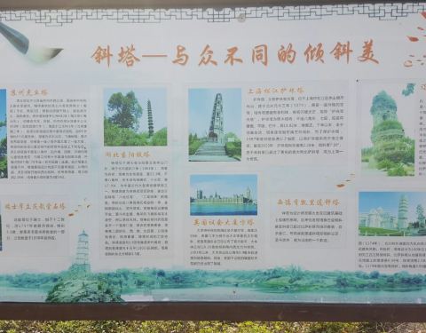 园区很小,没啥意思。没有知识真可怕。世界八大斜塔之一世界八大斜塔之一。园区很小,没啥意思。这座塔是在江中间的,古代时为镇住江里的妖怪而建。塔身本体是青砖,不知道哪任县长说要涂涂料,于是就成了现在的白色。没有知识真可怕。