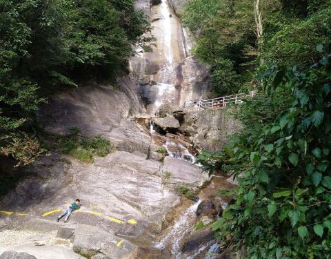 一大早就去了明月山,直接山脚下买了缆车票坐上去。一路往下走看到了著名的云谷飞瀑,由于天气这时下了毛毛雨,所以照片拍了不是很美。
