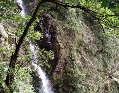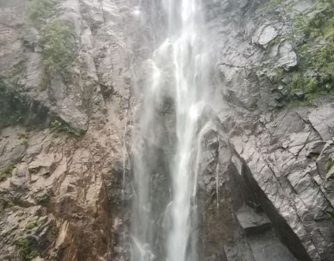 一路往下走看到了著名的云谷飞瀑,由于天气这时下了毛毛雨,所以照片拍了不是很美一大早就去了明月山,直接山脚下买了缆车票坐上去。一路往下走看到了著名的云谷飞瀑,由于天气这时下了毛毛雨,所以照片拍了不是很美。