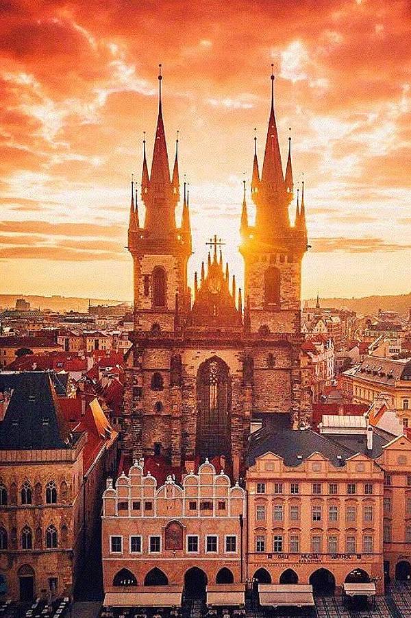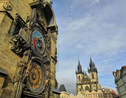 欣赏提恩、圣尼古拉斯教堂等风格多样的建筑,整点观看天文钟报时。