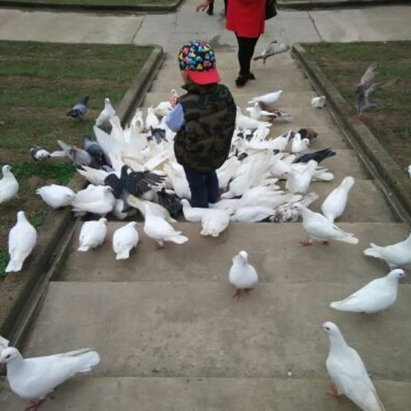 2. 音乐台有专]卖喂鸽子的食物,2元一袋;