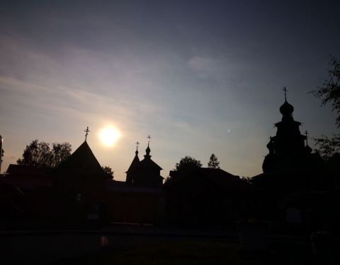 #2018俄罗斯风情游# 九月的旅行,再不写就要被忘光了。 此处不是一个古迹公园,是一个打造的公园,把各地的木造建筑的房屋汇集在一起,有点像景德镇把各年代的磁窑汇集在一起开一个公园一样。 建筑非常有特点,只是这个博物馆简单了点,只有木屋,木制教堂,农家木屋和地主木屋。 有的木屋里有当地人在售卖纪念品,而且非常熟练的用中文介绍,并告诉大家这个50元,哪个100元,可以接受人民币,我看了我妈一眼,我妈脸一马,哦,我懂得起,继续逛。 离开时夕阳西下,教堂变成剪影就格外的好看了。