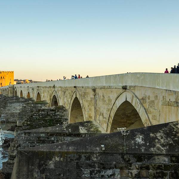 至今仍然在使用的古 罗马 桥最初建于1世纪,在13世纪到19世纪又有不同程度的修建,大桥以巨石建筑,有16个桥孔日落即将到来,正是观赏古罗马桥的最佳时刻站在桥的南端,对岸的清真寺和古朴的大桥相映生辉 黄昏渐...