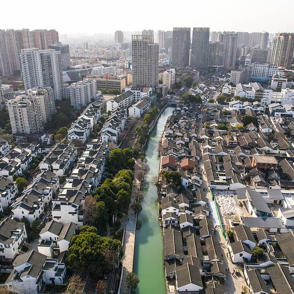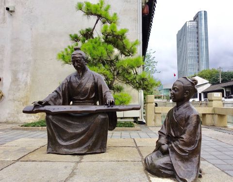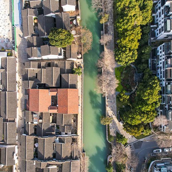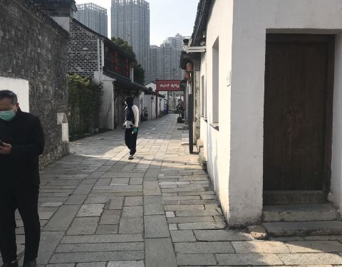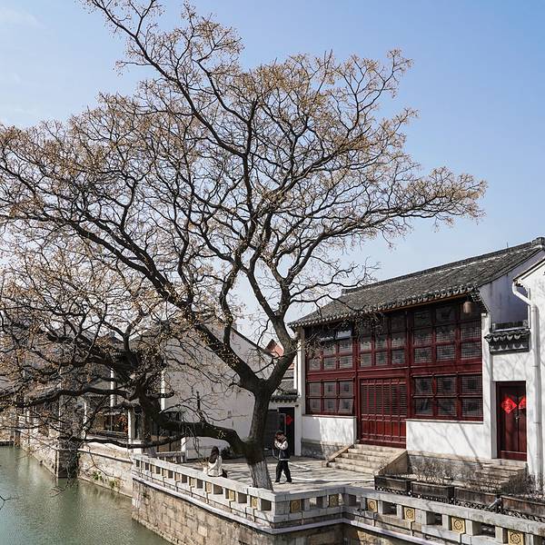 青果巷在一番整修之后,重新焕发了新的魅力。这里保留了原有的名人故居,桥坊碑石,祠庙殿宇。另外呀,还在大运河边建起了许多茶坊,餐厅,咖啡厅。让这条古巷充斥着现代的小资气息。从空中看古运河就像一条绿色的玉带横亘在城市中央,两旁是白墙黛瓦的房子。不远处是城市的高楼大厦,古今结合,很有意思。春天刚刚到来,树叶还没有抽芽,但是春天的气息已经悄悄的透露出来了。