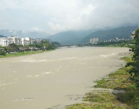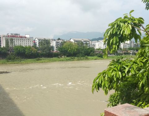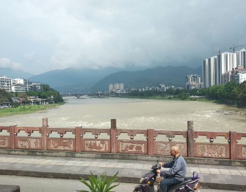贯穿了整个雅安市区,而且,随着山势起伏,地形转折,江水还呈现着曲折的变化,在廊桥下,水流貌似浅显,却嘶吼咆哮,看两岸的水痕和廊桥高度,可以推知水势曾经澎湃疯狂。然而流过了眼泪,在潮平两岸阔之处,却又平静如斯,却难测深浅。沿着江边漫步,我似乎在看自己一生的跌宕起伏。