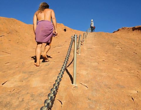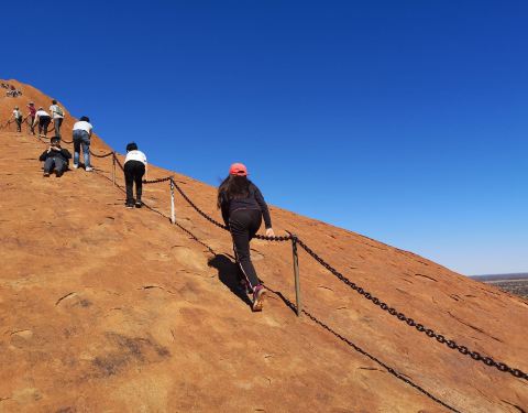 第三站乌鲁鲁,攀爬已经关闭再也不会开放。新闻说明年关闭但其实已经关了。爬人家的神石确实不太好。而且攀爬的道路看着都危险,就一个铁锁,你抓着往上走,没安全措施,没台阶。风大的时候去世了35人......