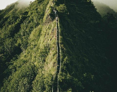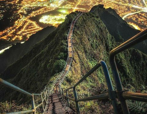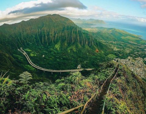 夏威夷欧胡岛,由于形势非常陡峭,仿佛能直达云霄,因此又被人们称为“天堂的阶梯”夏威夷欧胡岛,由于形势非常陡峭,仿佛能直达云霄,因此又被人们称为“天堂的阶梯”。海拔850米,一共3922道台阶,来回需5小时左右,那么问题来了,你敢去吗?
