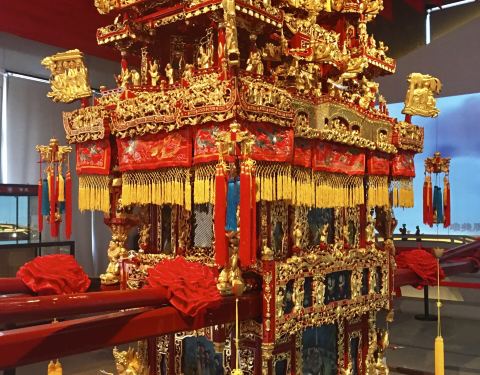 看一些古代时候的嫁妆,还有一个很美的轿子