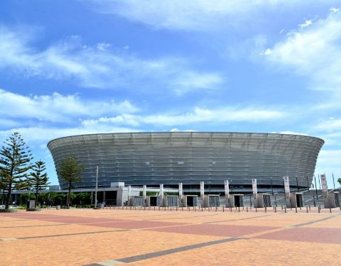 开普敦球场是南非为举办世界杯新建的五座球场之一。新建的开普敦球场位于桌山和罗本岛两大建筑之间的“绿点”区,因而得名。开普敦球场是在原旧体育场旁新建的一座多功能球场。旧体育场只能容纳18000人,已改建成了新球场和世界杯的宣传基地,设有开普敦足球史展览室、影视大厅等。2009年12月,开普敦球场正式竣工,容量也扩充至68000人,其中的1.3万个临时座位在世界杯结束后拆除,从而使其能够满足所有的大型项目,包括足球、橄榄球、音乐会以及其他大型活动。