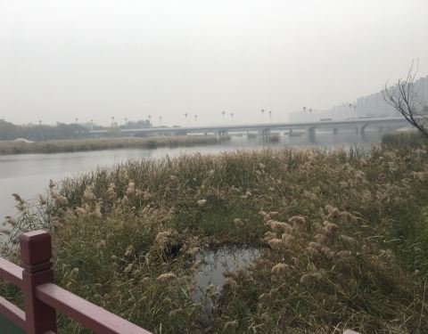 潮白河近年来的环境真是越来越好了很多人都会在周末的时候过来这边玩,也有不少人经常在这边钓鱼,临近秋天的时候河上的植物也特别的好看!难得有这么自然景色的啊!