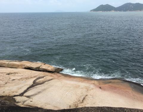 从长洲岛码头出来,沿着右手边的海岸线。走上一个小时可以来到五行石,途中会经过张保仔洞,可以顺道去看一下。五行石是一块非常大的石头,横卧在海岸边。下面的石头也非常的大块,而且比较平坦,据说是长洲居民晒鱼干的地方。不过我们去的那一天天气雾蒙蒙的,湿度大,也就没有看到壮观的晒鱼场景。