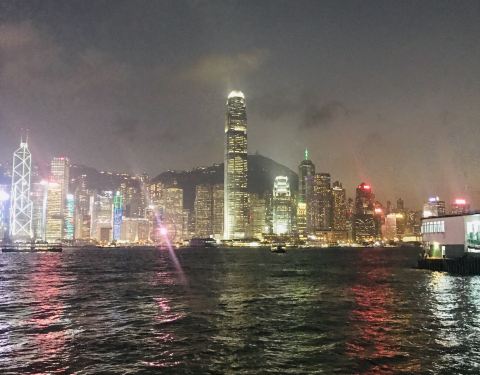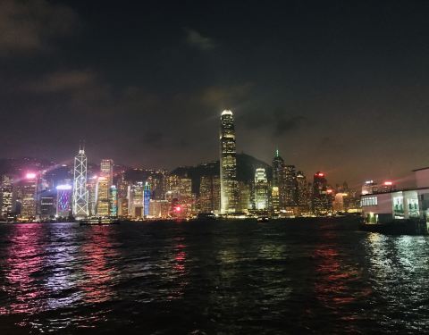 华灯初上的时候去乘船吧,可以在船上看维多利亚港两岸的港风夜景 展开