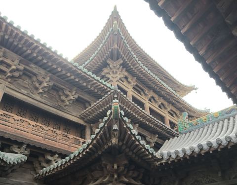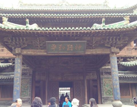 榆次老城中的城隍庙门口的主建筑是座联体的多建筑,是中式木结构建筑,风格独特,精巧绝美,很有看头。城隍庙有几进各有特色,房顶上的小建筑标志更有特色和故事典故。