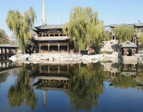 共小巧玲珑,布局得体,亭堂楼阁廊瀑巧妙结合,浑然一体,在北方园林中别具一格