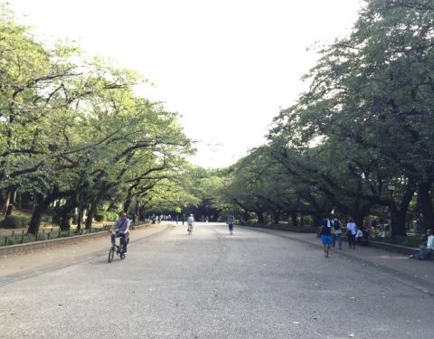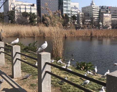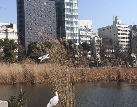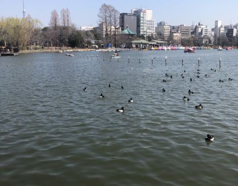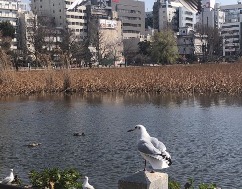 不忍池是位于上野公园中,池中央有祭祀辩才天女的“弁天堂”,栖息着鸭、鹈等许多鸟类。池内生长着大片莲花,夏季,整个池面被莲花所覆盖,如遇雨天,细雨中沉甸甸的绿色和荷叶上的水珠更添一份跃动的活力。春季可以看到樱花盛开的景象。湖虽不大,但可以享受泛舟之乐,水上音乐堂则时常举办音乐会等各种演出。不忍池的石碑上篆刻着名称的由来:曾经,在上野和本乡台地之间的地名被称为“忍ヶ丘”。不忍池远处是一片建筑,据说是东京较早的高层建筑群,是日本经济腾飞时留下的产物,和不忍池搭配在一起,也不失为一副迷人的画幅。