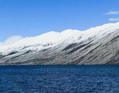 只见宽阔的湖面被雪山环抱,湖水清澈碧蓝、平滑如镜,又是一处人间仙境,但略逊于九寨的长海