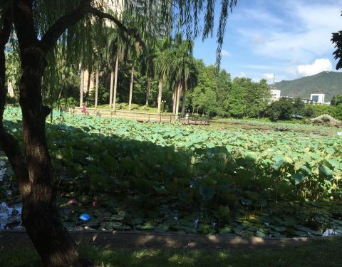 ...,但却有树、有水、有花、有草,时而也能听到虫鸟相鸣,与周边的闹市环境相比,也算是难得的清净之地