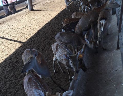 下午4点多钟达到,所以没有看上小鹿表演,不过也想到不错啦,用的年票。鹿世界里面除了鹿,还有羊驼,兔子,骆驼,还有最可爱的小香猪,在很矮的猪圈里,可是它们就是跳不出来。 这里适合学龄前儿童,喂喂动物,很有意思。我们没有自带食物,据工作人员说是不能自带食物喂食动物的,园子里只有3元一杯的胡萝卜,我们买了喂小羊,它特别爱吃,早知道这样,从家带七八斤到这给这些动物改善生活吧。好像这些动物平时的伙食真是不太好,鹿都是在吃干树叶的。 鹿世界实际上也是一个科普馆,还是个销售鹿制品的地方,看见有鹿茸卖。 我们是用的高德导航,指路的很正确。据说百度地图是不对的。