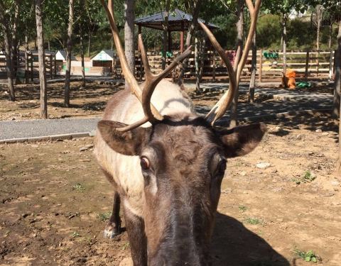 应该是私人开的,地方不大,比较破旧了,但能近距离接触动物,有鹿,兔子,养,猪,鹅,味道比较大,鹿是最多的,好多都没鹿角了,看着鹿挺可怜的,