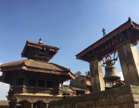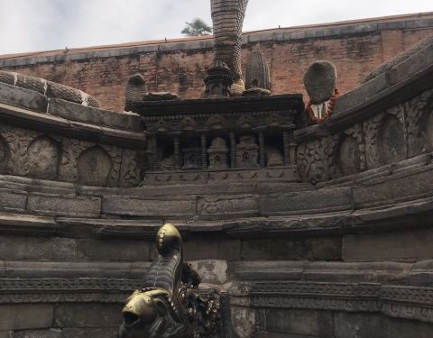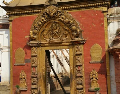 五十五窗宫——是巴德岗王宫的一部分,曾是尼泊尔保存最完好的古城。也叫:旧王宫。2015年的大地震使这个千年古城损毁严重,很多著名的建筑目前都在修复中。从残破的废墟中可以看出当年的气派与辉煌,金漆的大门...