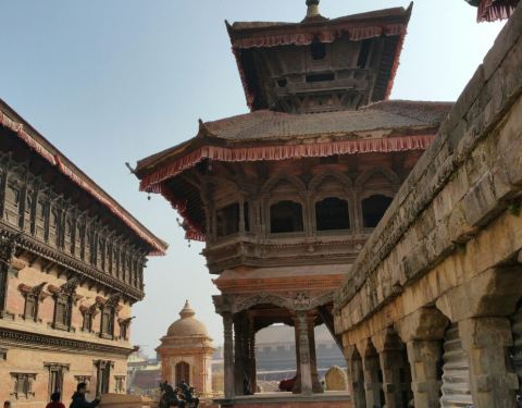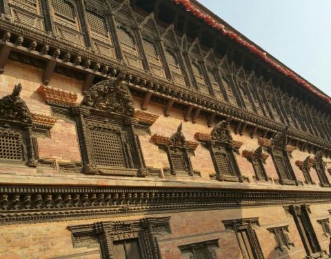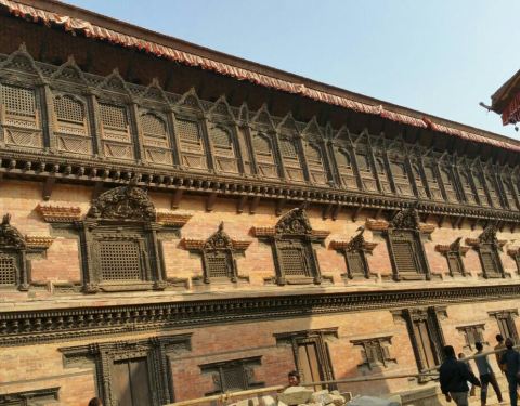 五十五窗宫——是巴德岗王宫的一部分,曾是尼泊尔保存最完好的古城。也叫:旧王宫。2015年的大地震使这个千年古城损毁严重,很多著名的建筑目前都在修复中。从残破的废墟中可以看出当年的气派与辉煌,金漆的大门和旧王宫的55扇黑漆檀香木雕花窗,非常精致,不愧为世界各地的人前来观光,就为一睹其风采。