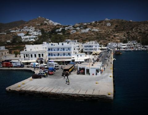 蓝星游轮驶出纳克索斯岛港口大约二小时后,远远地看到竖立于伊奧斯岛海岸峭壁上的灯塔。蓝星游轮于下午14:05分左右抵达另外一个小岛--爱琴海跳岛游最后一个小岛、距离目的地圣托里尼岛最近的小岛伊奧斯岛(IOS)。 伊奧斯岛是个很小的小岛,位于纳克索斯与圣托里尼岛的中点。伊奧斯岛只有两千多户居民,大多住在西海岸,小岛气氛悠闲,生活节奏缓慢,是倍受欧洲年轻人推崇的“聚会之岛”。在小岛的港口有贯穿全岛的巴士,如果采用乘车加步行的游览方式会是一段相当舒适的旅途。 伊奥斯岛上主要的城市有依山而建的乔拉(Chora)村,整个村子都粉刷为白色,非常美丽。楼梯和狭窄的道路,不便于车辆的行驶。村顶还建有一个奥迪西斯埃利蒂斯露天剧场(Odysseas Elytis)。另外,Skarkos山史前文化遗址和热闹的海滩,也是吸引人们到来的原因。