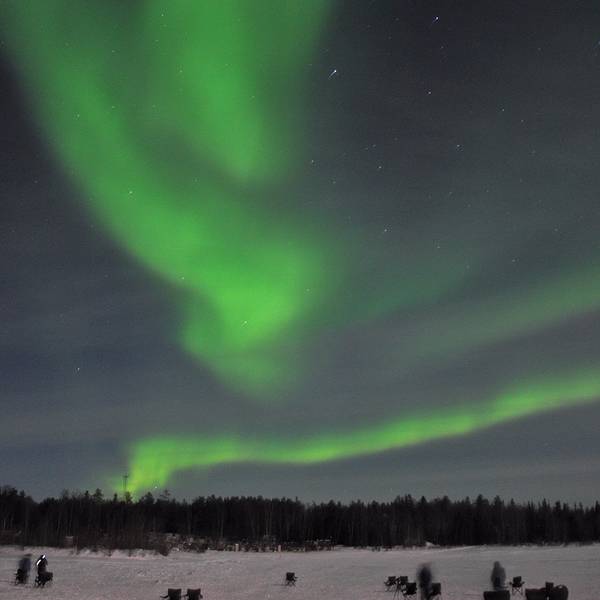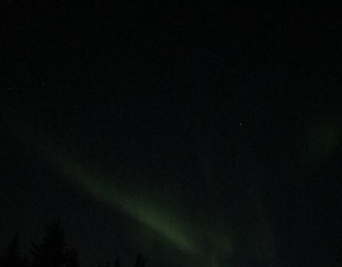 一路上,透过车窗已经可以看到有极光了。一下车,头顶上都是璀璨的流转之光,好像幻境一样。好不容易听完导游对极光村的介绍,我们架起相机开始不停地拍摄。在极光村营地的木屋和帐篷的映衬下,极光显得更加漂亮。美丽来得快也去得快。差不多半个小时后,极光逐渐变淡、消散了,而且云层也上来了。一直到凌晨1点我们离开营地,极光也没再次露面。 展开