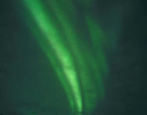浩瀚夜空中北斗七星特别显眼,这么清晰的凭肉眼就可看到北斗,这也算是个意外收获吧。回家整理照片时发觉一张北斗七星与极光的合照,真是难得。12点过后,极光逐渐变大了,一阵一阵的,一会在东一会在西,大家端着相机不停地在营地里换拍摄地点。看过了昨晚的极光,我们显得相对平静些。1点快到了,该离开营地了,我们把照相器材收拾好,走出帐篷。这时候,整个营地里突然像炸锅了一下,都是激动的人声,极光突然爆发了,布满了整个天空!此时的极光才能被称为欧若拉,欧若拉在外面的头顶上翩翩起舞,像蝴蝶、像飞鸟快速的扇动翅膀,像瀑布一样从上往下播撒,瞬息万变,真正是璀璨的天空之舞,根本停不下来的美景盛宴!来不及重新架设相机了,就用眼睛去好好欣赏这视觉上的无从估计的幻变翻腾,享受这若即若离的美感吧。