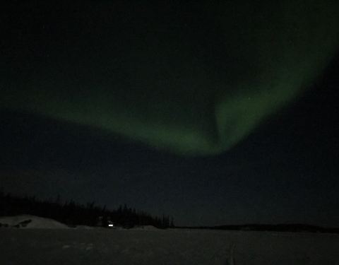 黄刀追极光,由于云层较厚,导游带我们驱车二十几公里,来到远离市区的大奴湖旁,苦等二个小时,终于远处极光如精灵般跳跃着,翻滚着,如闪电,如卷云,喷涌而来,让人目不暇接。不身临其境,绝对无法有那种震撼...