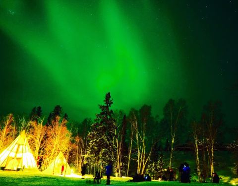 美丽来得快也去得快。一下车,头顶上都是璀璨的流转之光,好像幻境一样- 今天晚上换个方式追光,我预订了两晚黄刀镇最热门的Aurora Village极光村。极光村的活动时间也是4个小时,但要比开车追光早开始和早结束1个小时。晚上9点,我们坐着极光村的车辆往镇外30分钟车程的极光村营地出发...- 今天晚上换个方式追光,我预订了两晚黄刀镇最热门的Aurora Village极光村。极光村的活动时间也是4个小时,但要比开车追光早开始和早结束1个小时。晚上9点,我们坐着极光村的车辆往镇外30分钟车程的极光村营地出发。