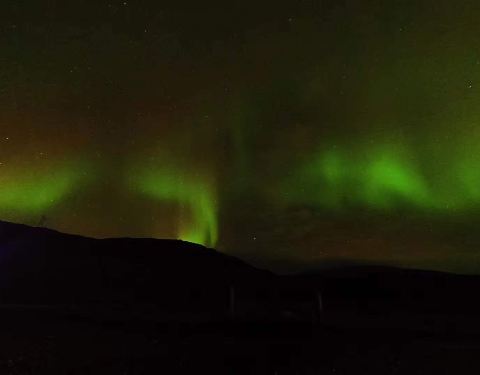 ...快速的扇动翅膀,像瀑布一样从上往下播撒,瞬息万变,真正是璀璨的天空之舞,根本停不下来的美景盛宴- 晚上9点,我们继续去极光村营地。刚到营地,漫天繁星,极光只有若隐若现的一点。大家在营地的帐篷里休息着,时不时出去看看是否有极光出现。
