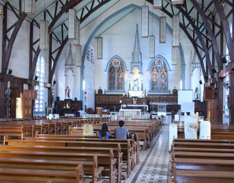 有很多信徒过来做礼拜,很热闹,一路从滨海大道走过来的,不远,谷歌地图上才650米左右,蓝色的窗户玻璃圣诞当天来的,有很多信徒过来做礼拜,很热闹,一路从滨海大道走过来的,不远,谷歌地图上才650米左右,蓝色的窗户玻璃,据三轮摩托车司机说始建一八六几年,值得过来看看!