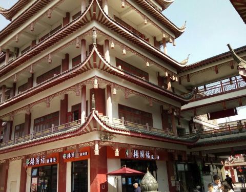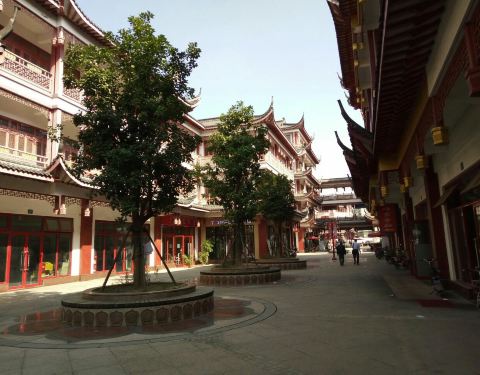 东林寺附近,就是热闹的步行街,建筑风格以及装饰都算有特色,应该算特色小镇吧东林寺附近,就是热闹的步行街,建筑风格以及装饰都算有特色,应该算特色小镇吧!从东林寺俯视步行街,还有街中心的莲花台也是彼此的呼应。