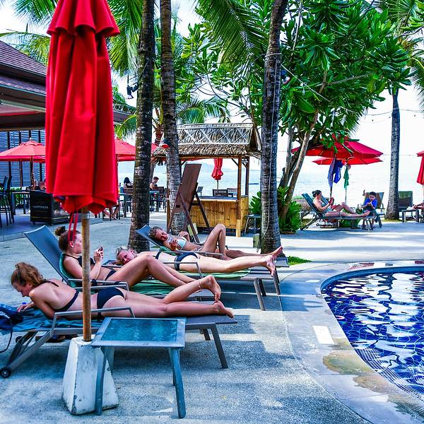 从阳台向外望去,眼前呈现的是一片迷人的海岛泳池风光,当微风轻轻拂面,无比的舒适。特别多的欧美住客喜欢趴在躺椅上晒太阳,身穿比基尼的美女们也成了一道靓丽的风景线。去楼下拍照时,正巧遇到两个 俄罗斯 小姐姐经过,我向她们Say hi后,问是否可以出镜,她们立马欣然答应了,那温柔的笑脸如同春风般定格在了我的镜头里。酒店的泳池很大,总共分布在三个区域,每一处都可以随时随地尽情畅游,惬意非凡。泳池旁边还设有一个儿童游乐场,适合带娃的家庭陪小孩一起尽享亲子欢乐时光。私人沙滩人少安静,海水是薄荷绿的颜色。在这里俯瞰无垠大海,可以静享一片私密海湾。从酒店大门出来,就走到了当地的街道上,这里有很多餐馆和商店,一直往前走就可以看到7-11和全家宜,买东西吃东西都超方便。街边也有很多不错的精品店和咖啡厅,适合喝个下午茶,慢慢的逛,说不定还可以淘到心仪的伴手礼带回国。再继续往前,就到了渔村步行街,如果待得久的话建议周五来,周五这边有热闹的夜市。街上原生态质朴的市场氛围,吸引了很多欧美游客聚集在这边,感觉逛一个下午都不会觉得累。再从步行街的终点走向海滩,躺在懒人沙发上,感受海风徐徐,浑身舒服到了骨子里。傍晚就近选一家餐厅,品品 泰国 美食,美好的一天在味蕾中结束。 展开