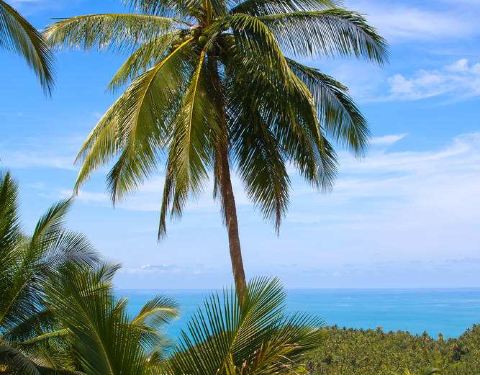 一片月牙般洁白的沙滩,环抱着被阳光晒得闪闪发光湛蓝的海水,随着波浪轻轻的晃动海面,海水被分出浅蓝至碧绿层次分明的色彩。这就是苏梅岛,海滩众多、水清沙白、景致迷人。    苏梅岛早期的居民是150年前从海南来此定居的中国人,世代以种椰子为生。至今,椰子依然是岛上重要的经济来源之一,每个月要向曼谷运送约200万只椰子。苏梅岛也因此赢得了“椰林海岛”的美名。 作为有名的海滨度假胜地,苏梅岛上的水上运动也是品种繁多。你可以潜水、潜泳、划独木舟、划水,甚至扬帆出海。在感慨苏梅岛海滩的美丽之余,也不要忘了去拜访葱郁的椰树园、沉静的小渔村和美丽的瀑布。