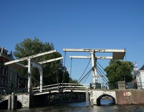 阿姆斯特丹的运河总长超过100公里 弯弯延延的运河缓缓流过 更有1500座大大小小的桥横跨河流 连接着整座城市