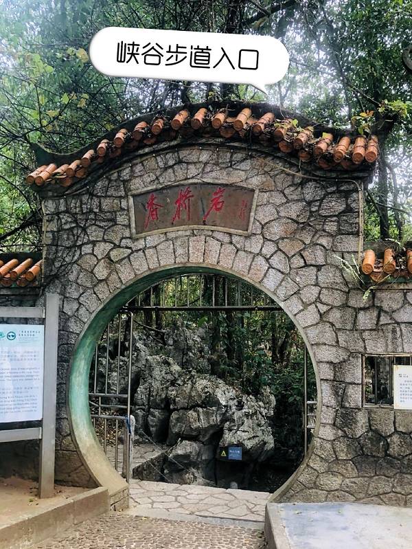 🔹步道入口就在观光车车站旁边,一个不起眼的月亮门。