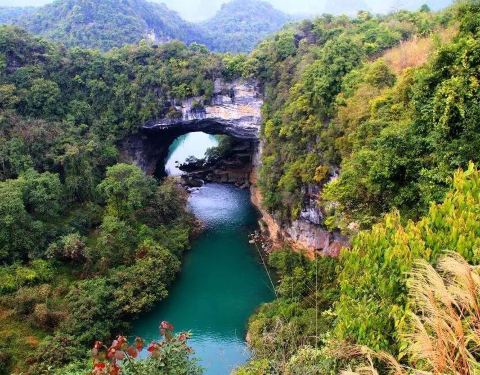 鹿寨香桥岩溶国家地质公园以喀斯特地质地貌风光为主,这里环境优美,还有溶洞、地下河、天生桥、天坑等特色景观。景区春天花开草长,夏季树木成林,多种珍稀动植物在这里自由自在地生长。