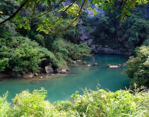 ps:顺便还可以去响水瀑布、鹿鸣谷和中渡古镇看看,但个人觉得没什么意思,只是凑满一日行程而已 吃饭可以在中渡古镇解决,但我个人不爱吃当地那个叉烧粉。