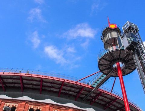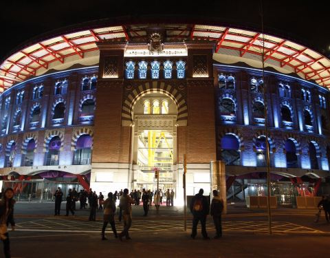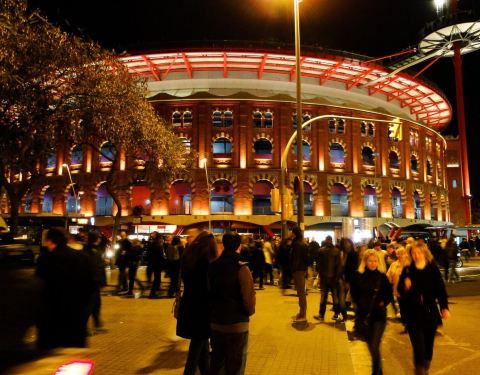 大斗牛场旧址有着精致的红砖外墙,红白相间的拱劵门带有浓厚的摩尔风格。在巴塞罗那正式禁止斗牛以后,已经被改建成一个购物中心,保留了复古的外观。购物中心改造后里面呈圆环形布局,一共有六层,其中三层用于购物,还有三层有各种娱乐设施,包括电影院以及健身房,内部装修十分现代化。付1欧元就可以乘坐户外电梯到达顶层,环绕一圈欣赏城市景观。当然你可以考虑在顶楼用餐。找个出口,走有些颤巍巍的楼梯下来博物馆旧址里还有一个小型博物馆,里面陈列着斗牛士穿的带有亮片的服装、公牛的头、海报、照片以及著名的斗牛士使用过的铁烙。