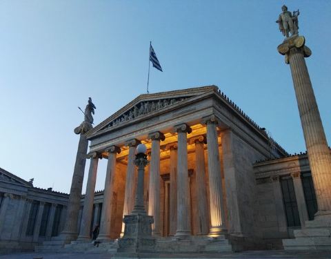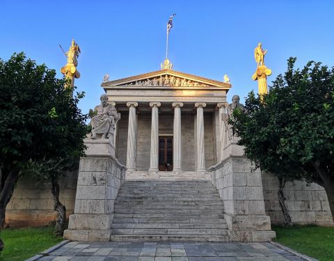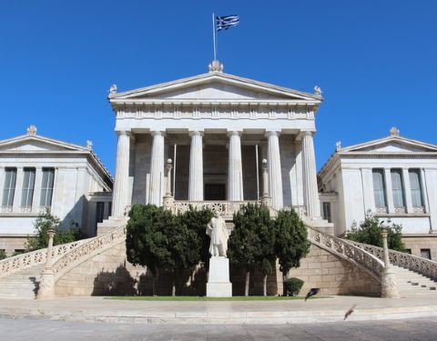 中间的建筑是雅典大学,雅典大学的外墙上画有希腊的主要天神像,非常优美雅典三座具有新古典风格的建筑,合称为“新古典主义三部曲”,分别是国家图书馆、雅典大学和雅典学院。中间的建筑是雅典大学,雅典大学的外墙上画有希腊的主要天神像,非常优美。雅典大学两旁分别是国家图书馆和...雅典三座具有新古典风格的建筑,合称为“新古典主义三部曲”,分别是国家图书馆、雅典大学和雅典学院。中间的建筑是雅典大学,雅典大学的外墙上画有希腊的主要天神像,非常优美。雅典大学两旁分别是国家图书馆和雅典学院。国家图书馆里面收藏有众多的希腊古书和文学作品。雅典学院是模仿卫城建造的,外面的两根柱子上分别雕刻着身着盔甲的雅典娜和手持乐器的阿波罗立像,柱子下面有柏拉图和苏格拉底坐像。 展开