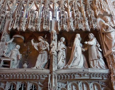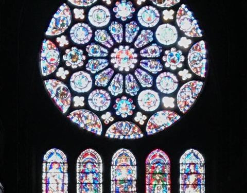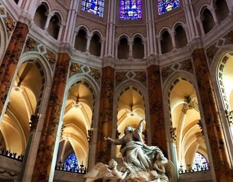 建筑很宏伟,窗户装饰也很夺目,非常艳丽,是法国建筑上的经典杰作。虽然后期曾重建,但是依旧有风采,在天空映衬下,格外引人注目