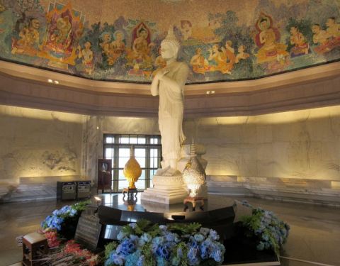 查斯里朋寺位于老城的东北方向,远远地望去这里有有一座有醒目的白塔,中间隔着一条河查斯里朋寺位于老城的东北方向,远远地望去这里有有一座有醒目的白塔,中间隔着一条河。寺庙囊括了具泰国中部特征的巨大僧院和大礼拜堂。佛塔耸立在远处角落里,四周的橱壁里也放着着许多的佛像。 2016-12-15 23:33