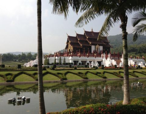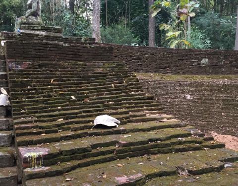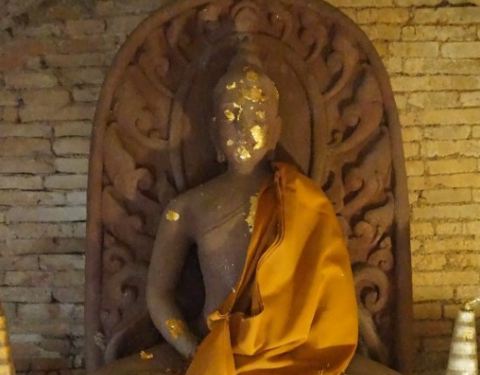 查斯里朋寺位于老城的东北方向,远远地望去这里有有一座有醒目的白塔,中间隔着一条河