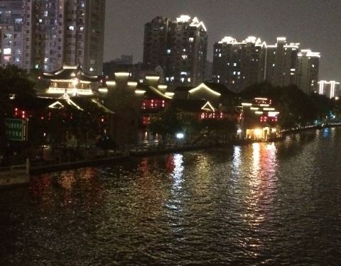 晚上吃过晚饭去河边散步,运河广场夜景很不错,周围的茶社气氛很好。还有特色小吃。如果购物的话还有大型的超市可以采购。是休闲的好去处。
