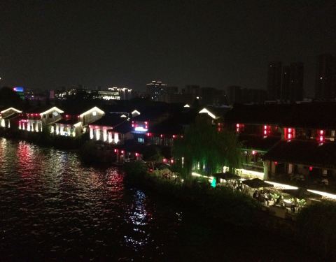 住在旁边,所以傍晚过去看了看,有点惊喜,旁边的桥西街挺不错的,街上的一些店也很有特色,挺小资的,还有京杭大运河的一些历史介绍都做的挺不错的,晚上桥西街的夜景也很漂亮。