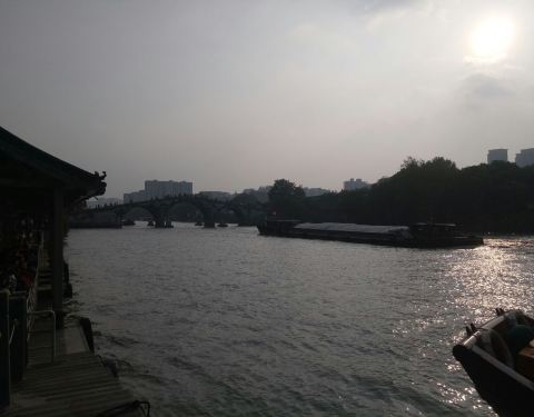 拱宸桥旁,很不错的一个广场,周末的时候还会有很多民俗的东西,吃的玩的也比较多,累了也可以到做在京杭运河旁边休息休息。