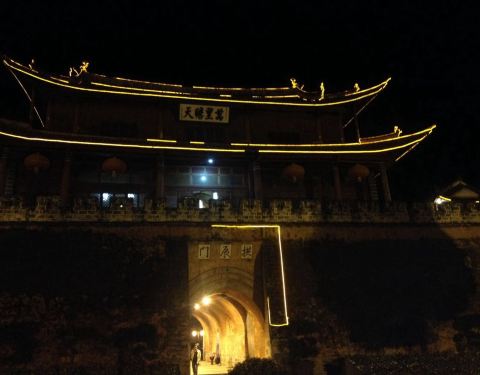 洪武年间建造的古城楼,这座城楼应该是古时的北门,据说最早的时候是三层,后来因为战乱但清代重建变为两层,也就是现在的样子。可惜鼓楼毁于去年的火灾,整个城楼尽毁。现在是重修的样子。据说去年重修的气候,是当地的木材商人捐赠的用于建造鼓楼柱子的木材,其实换个思维。能有传承的工匠们将其重修、复原,虽是新楼但是老工,也让我们可以看到工艺的传承有序,也算欣慰。
